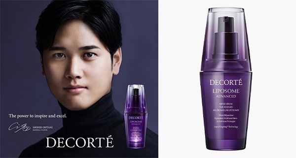 ▲‘데코르테’ 리포솜 세럼 광고 모델 오타니 쇼헤이 ▲데코르테의 ‘리포솜 어드밴스드 리페어 세럼’