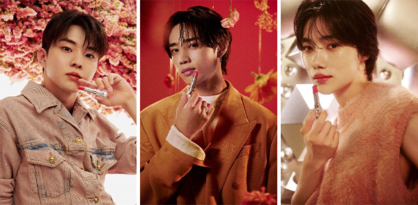 ‘더보이즈’ 멤버 3인의 메이크업 화보 속 립 제품은 질스튜어트 뷰티에서 새롭게 선보이는 립 글로우 컬렉션이다. 화려한 플라워를 테마로 한 디자인과 컬러로 입술 위에 피어난 꽃잎처럼 촉촉하고 매끄러운 발림성과 선명하면서도 윤기나는 색감이 오래 지속되는 제품으로 총 6가지 컬러가 론칭한다.