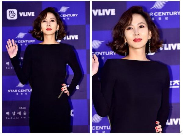 화려하면서도 우아한 블랙 백 리스 롱 드레스와 함께 고급스러운 단발로 스타일링한 김남주는 수 많은 여배우 중에서 단연 돋보였으며 특히, 화려한 아이 메이크업과 매력적인 레드 립 컬러로 시선을 사로잡기 충분했다.